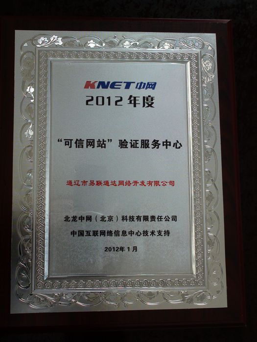 2012年通過中網(wǎng)可信網(wǎng)站認證,正式成為通遼地區(qū)唯一一個 可以為通遼地區(qū)企業(yè)的網(wǎng)站提供可信網(wǎng)站驗證服務的機構。
